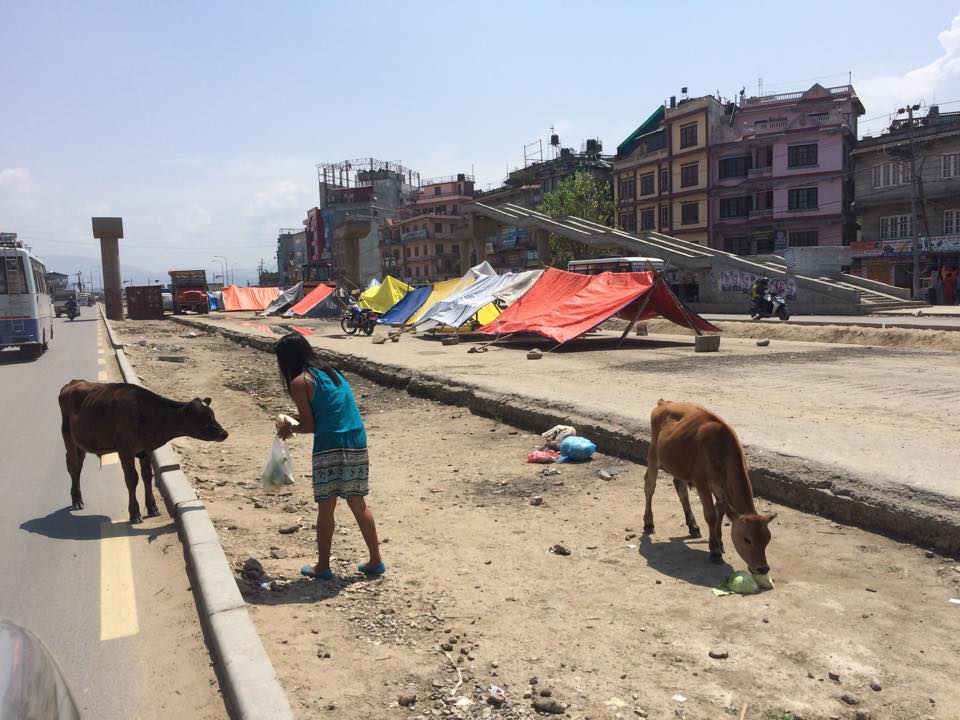 Where people are now sheltered with tarpaulin temporary tents, these cows and dogs have no where to go, and no food to eat, so they linger around and try  to eat what ever they find in the garbage. I have been trying to help these animals to the best way I can.
