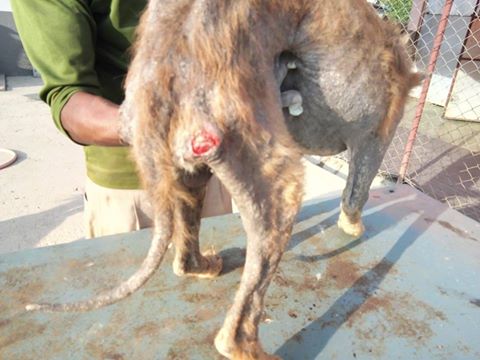 This dog was rescued about 8 days ago in a very miserable state so our team is determined to make him healthy once again in no time.