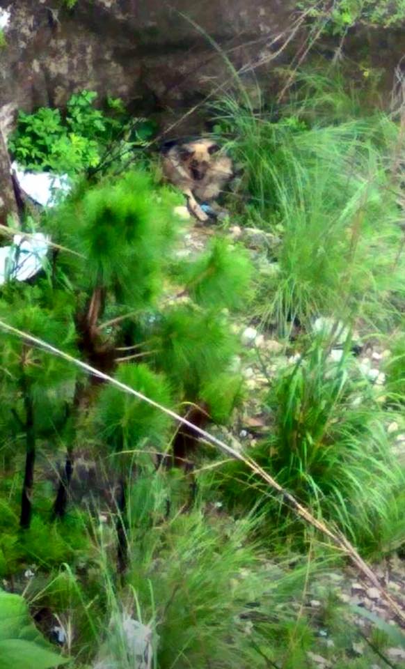 This German Shepard is on trap in the hill since three days as we got informed by the local students. Neither he can come up nor go down from where he/she is.