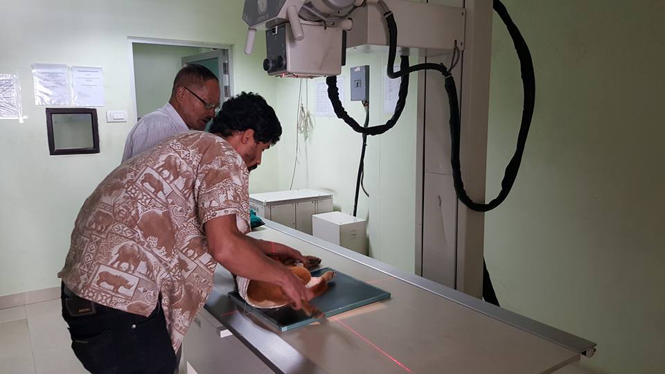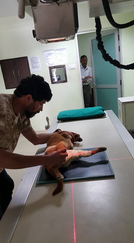 This dog was hit and run by a vehicle. One of a kind hearted girl took her to KAT center.She was fractured.