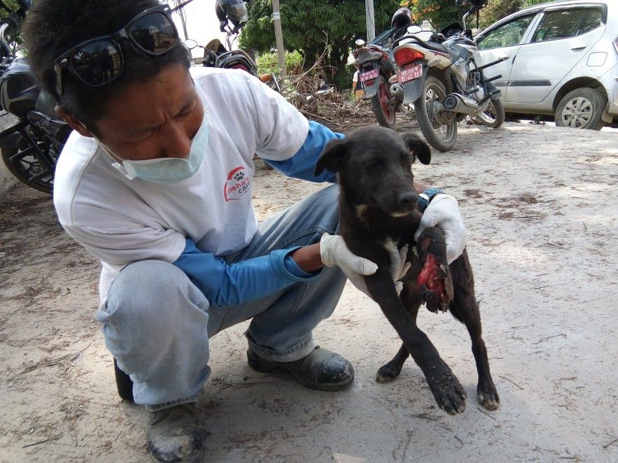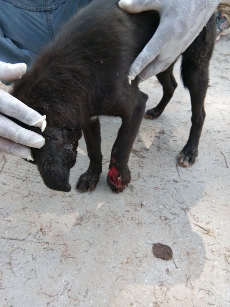This little innocent puppy was hit by a motorbike and left helpless in the street of Tripureshwor, Kathmandu. His left fore paw has been completely damaged. He is under medication and care at our shelter. We don’t have anything left to advise the drivers each day except cursing them each time when we get hit & run reported.