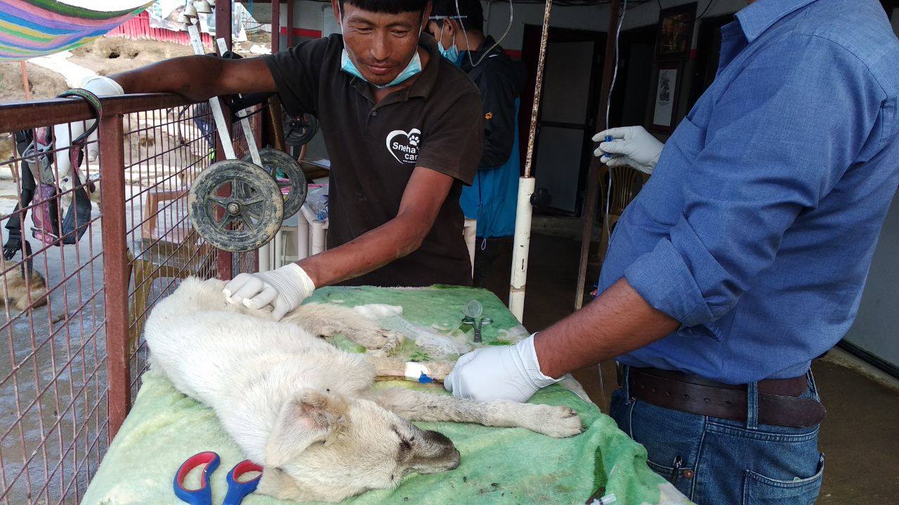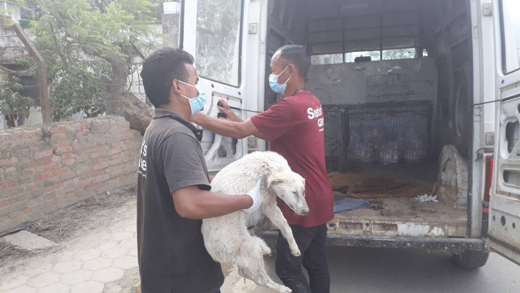 Mawoo was rescued this evening from the street of Kathmandu where she was lying in a cold concrete. She was in the same spot even though it was raining for few days. What a miserable situation she was into. She is so weak that she cannot stand on her own and show her expression. All we can see is a blink in her innocent eyes.
