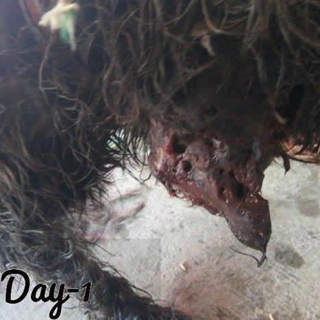 Whoever said the small things doesn’t matter has never seen a match start a wildfire and this is exactly what the above picture says. It all started from a small wound he got from a dog fight and ignorance, careless towards these reliable voiceless animals in no time aggrandized the wounds making it worst. We could have helped that pity thing from all these suffers if one had only stepped forward in time.