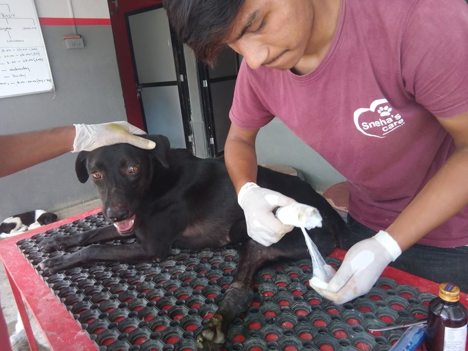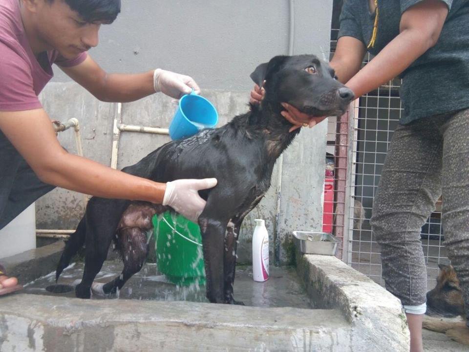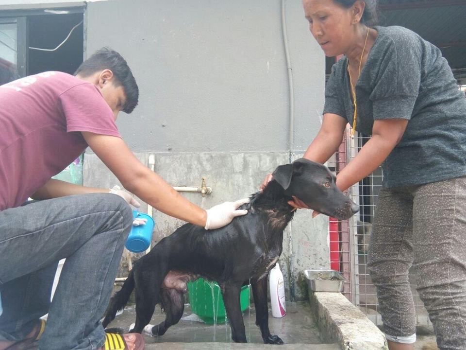 Somebody had hit him and left him to die at Sanepa. He was struggling to life when a kind lady Carole Ross found him and gave him shelter. Poor boy! Both his hind limbs are paralysed but this fortunate boy is rared with all the love and care that he deserves from the time he was found helpless. He is now at our shelter.