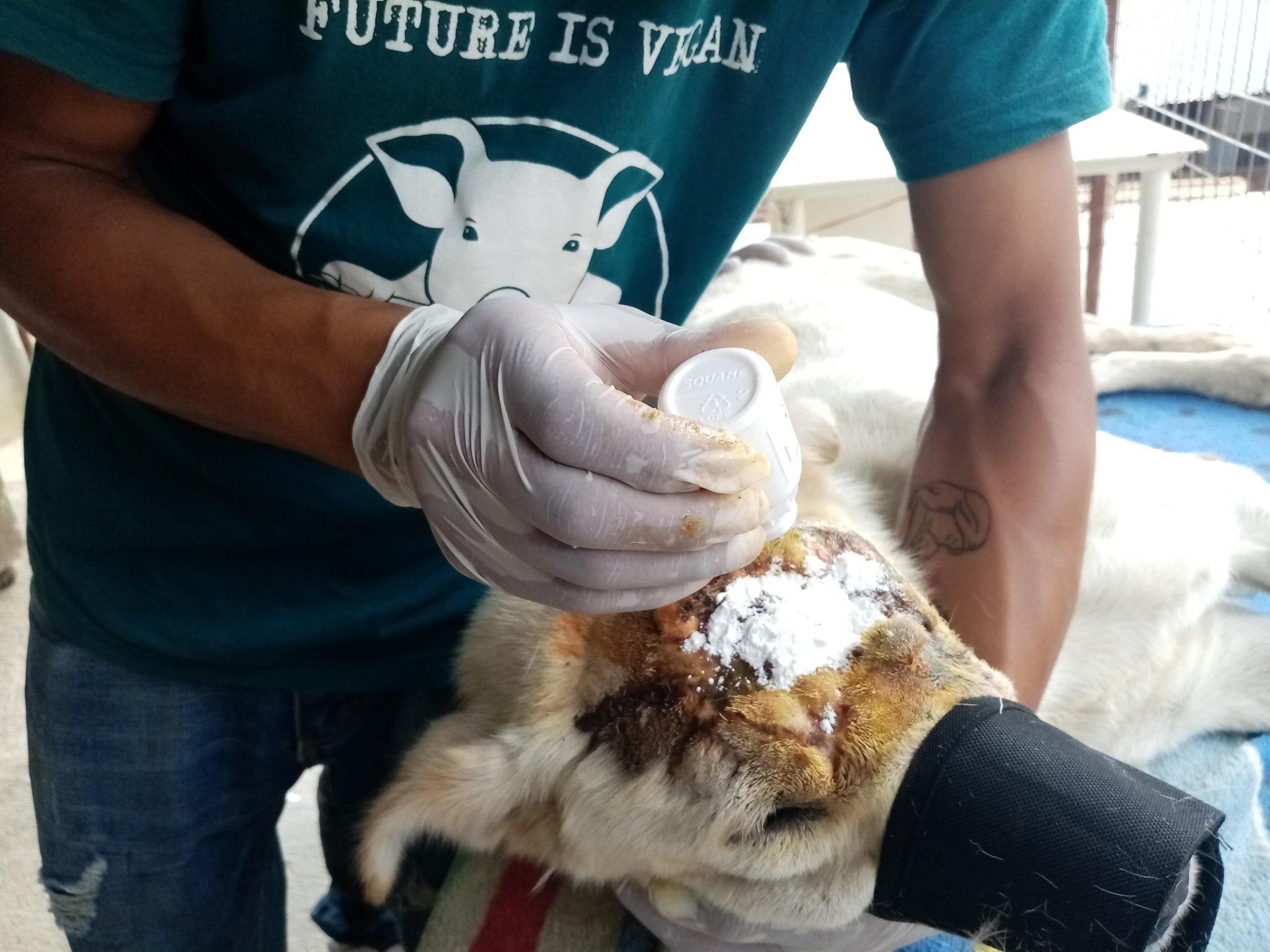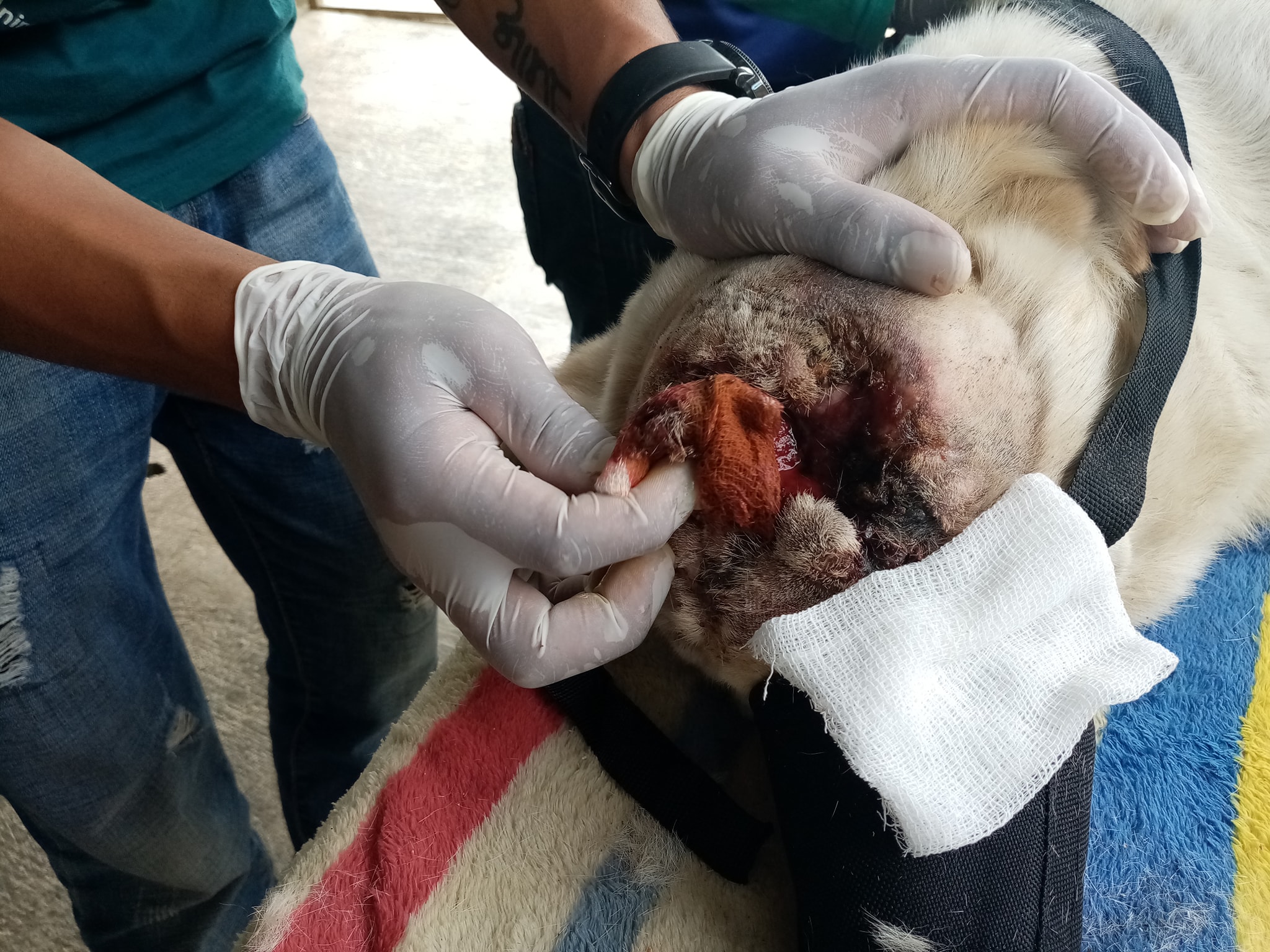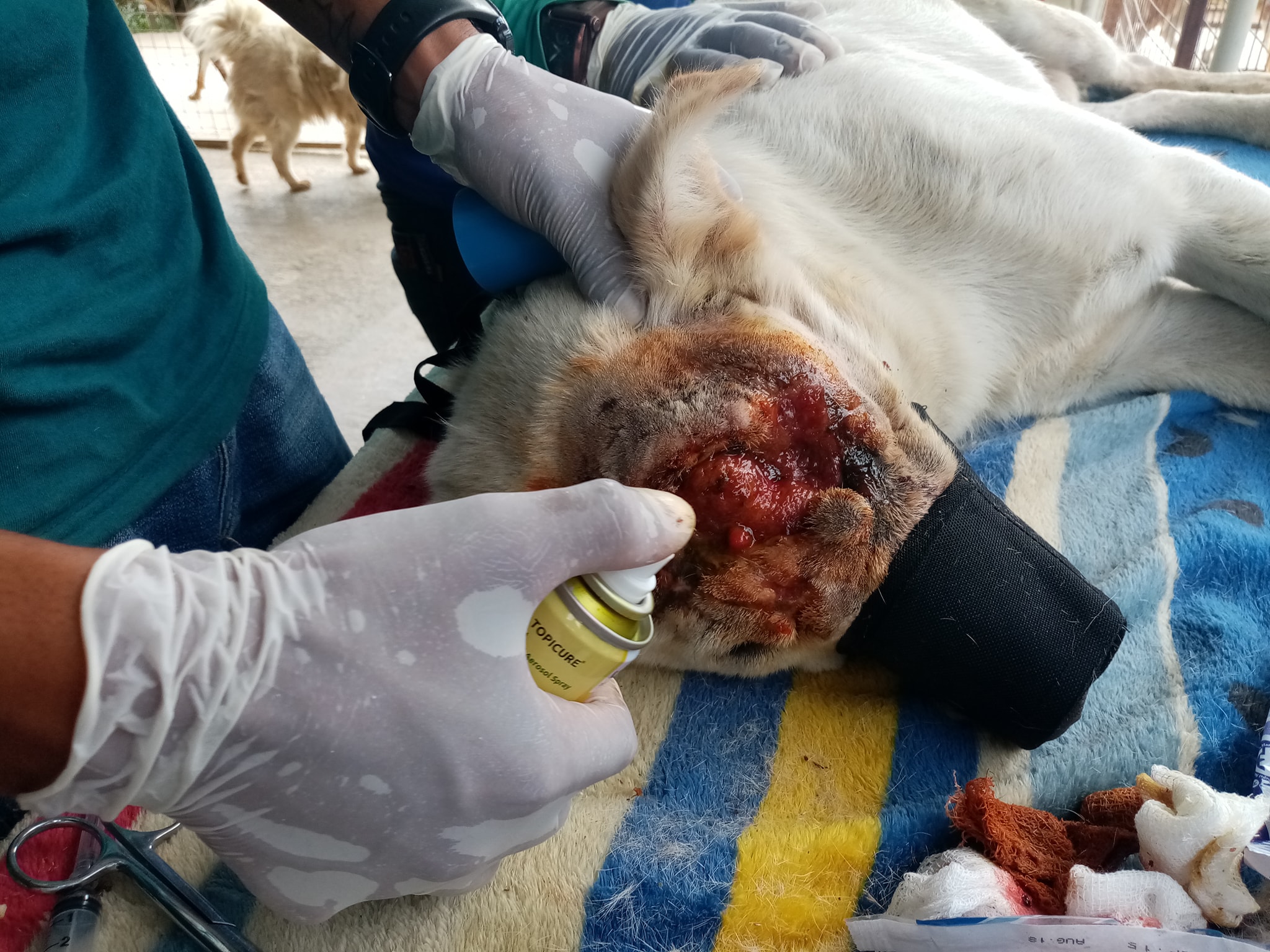 Maggots also have started to make a home there. We have cleaned and dressed his wounds, given him proper medications. Hoping for his speedy recovery.
