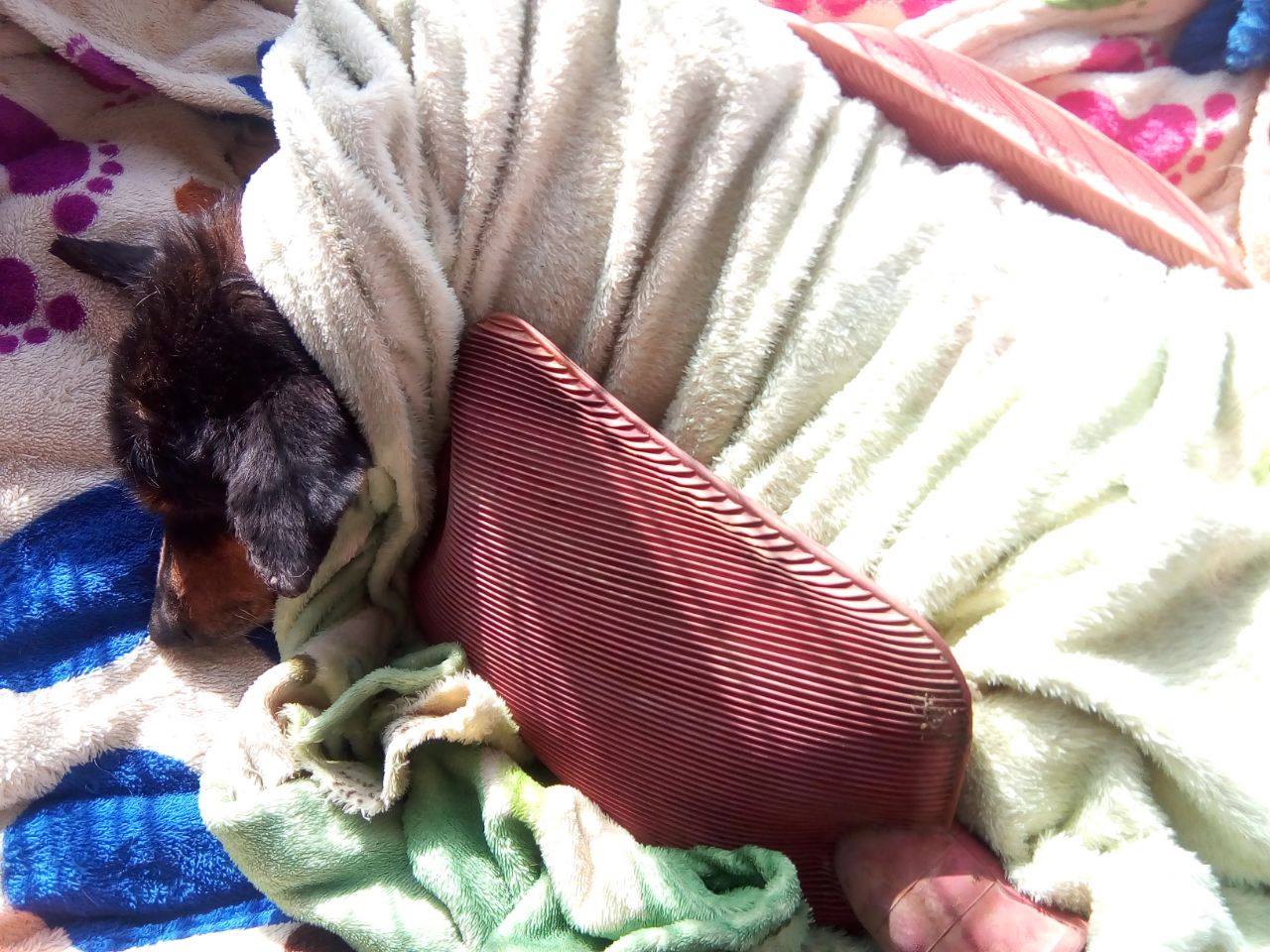 Kriti was rescued by a kind man and brought to us. She was hit by a car and has injuries on her back, due to which she cannot walk or
