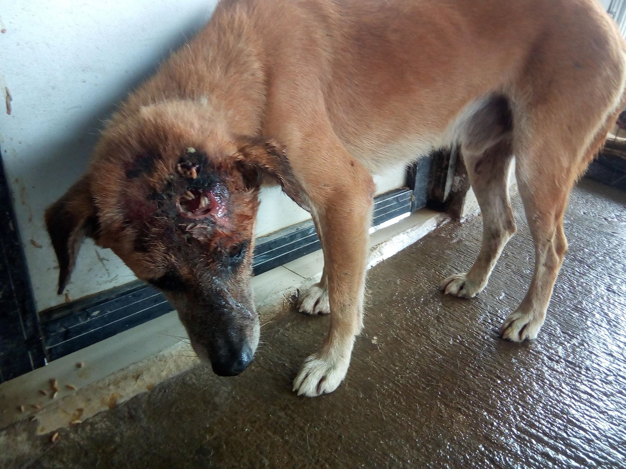 How do we humans respond to a small cut in our body? We screech and we demand medicines right away. Ever considered about all those animals in the streets unable to do anything or ask help from anyone when they have injuries. Likewise, this buddy has a big deep hole in his head and it was infested by numerous maggots. He might have hurt involving himself in a dog fight or also can be a cruel act of an immoral human. Only if he had a voice and go up to someone and ask for help or express his pain. Thank you, Amit for being a voice for him. He is under treatment and we hope to see him as a happy dog soon.