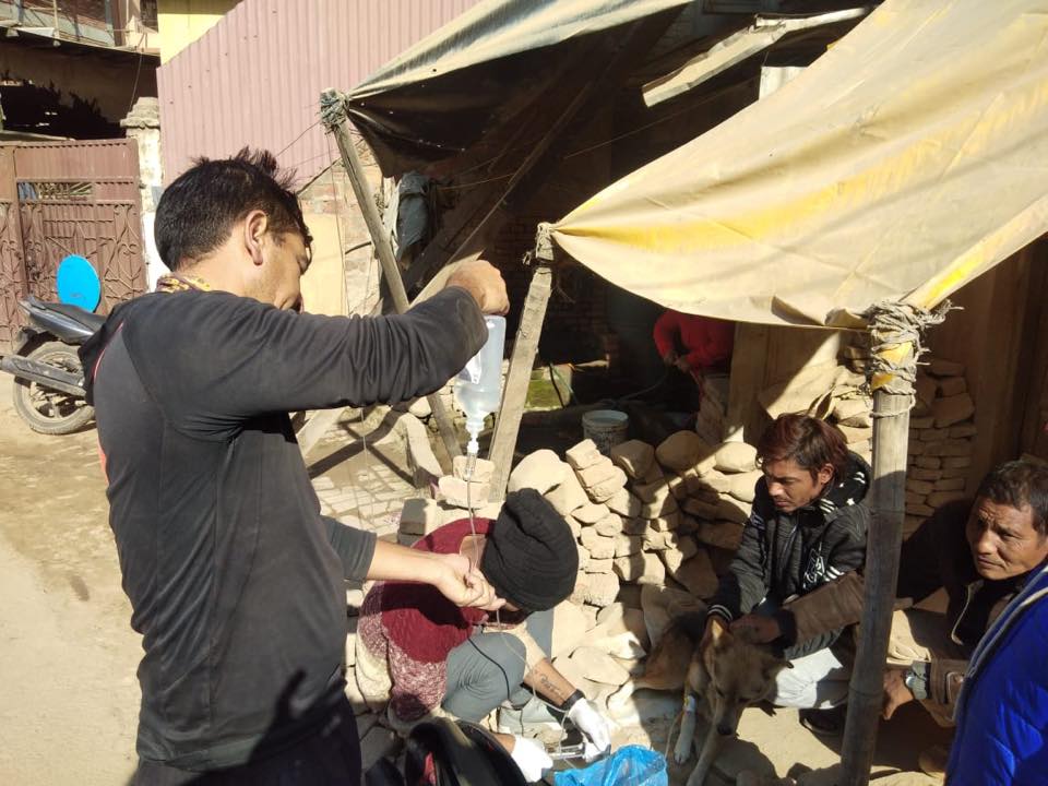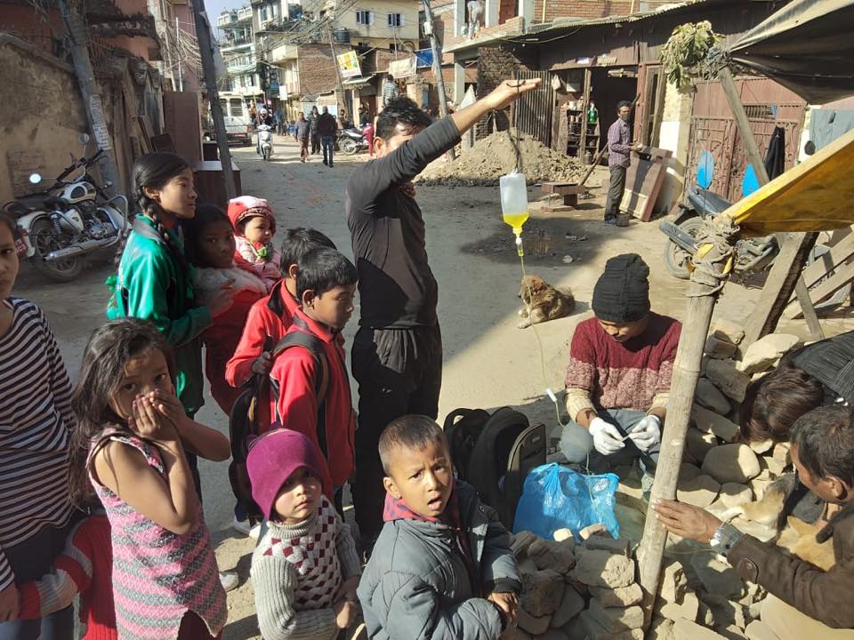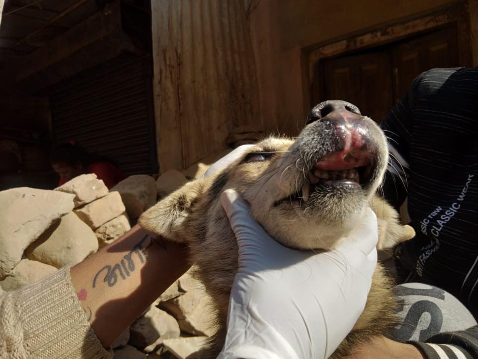 Treated a dog having Tumor in his nose this afternoon at Jalbinayak, Pulchowk after we got a rescue report by Mr. Deepen. It will take a month or more to heal the tumor as we have already started a therapy on the dog.