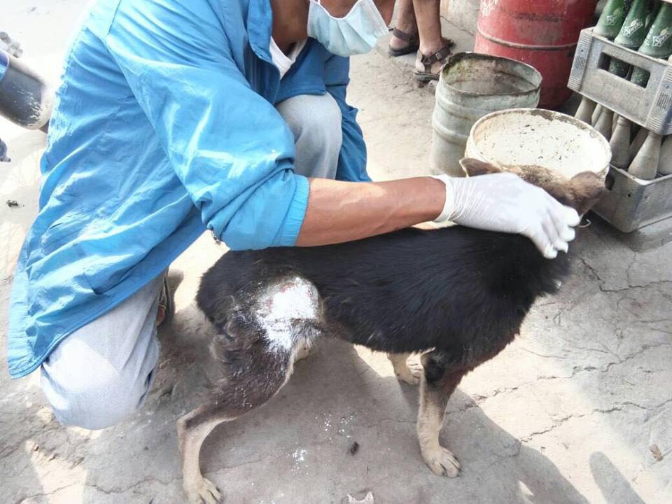 We got a rescue call and was able to help this dog this afternoon at Fun park, Bhrikutimandap. When you see such kind of dog in a severe condition, do call us or take the dog to the nearest vet or call the nearest vet for the treatment and don’t just wait to see more pain they are going through.